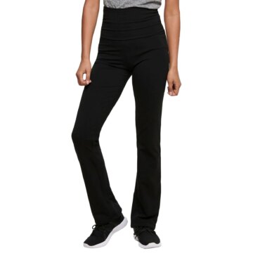 Specificaties: * Pasvorm: regular fit (ontworpen voor curvy vrouwenlichamen); uitlopende pijpen (flared); mid waist; elastische tailleband; licht-elastisch materiaal * Temperatuurregeling: ademend materiaal * Kleur: zwart * Materiaal: 92% katoen – 8% elastaan