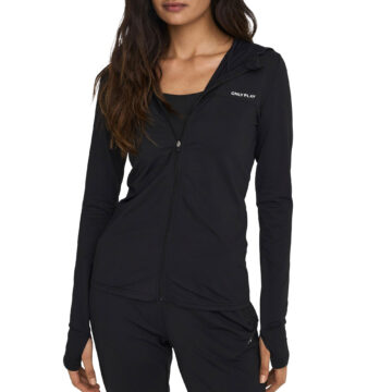 Specificaties: * Pasvorm: regular fit; hoge hals; speciaal ontworpen voor het curvy vrouwenlichaam * Temperatuurregeling: ademend materiaal * Rits: volledige ritssluiting * Manchetten: elastische manchetten aan de mouwen * Kleur: zwart * Materiaal: 50% katoen – 50% gerecycled polyester