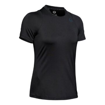 Specificaties: * Pasvorm: normale tot aansluitende pasvorm; ronde hals; 4-way stretch * Temperatuurregeling: UA Rush technologie; een met mineralen verrijkte stof die je lichaamsenergie gebruikt om je harder te laten werken en sneller te laten herstellen; sneldrogend en vochtafdrijvend; mesh inzetstukken voor ventilatie * Kleur: zwart * Materiaal: 51% polyamide – 49% polyester * Extra bijzonderheden: Anti-Odor technologie houdt nare geuren tegen