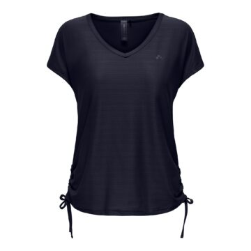 Specificaties: * Pasvorm: regular fit; V-hals * Temperatuurregeling: B-Dry; sneldrogend en ademend materiaal * Kleur: donkerblauw * Materiaal: 88% gerecycled polyester – 12% elastaan