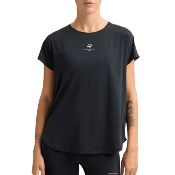 Specificaties: * Pasvorm: loose fit; ronde hals * Model: het model is 177 cm lang en draagt maat S * Temperatuurregeling: ademend en vochtafvoerend materiaal * Kleur: zwart * Materiaal: 88% gerecycled polyester – 12% elastaan