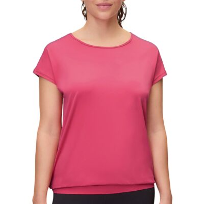 Specificaties: * Pasvorm: aansluitende pasvorm; ronde hals; korte mouwen * Temperatuurregeling: Drytivity material voert vocht snel af zodat je droog en comfortabel blijft * Kleur: roze * Materiaal: 91% polyamide – 9% elastaan